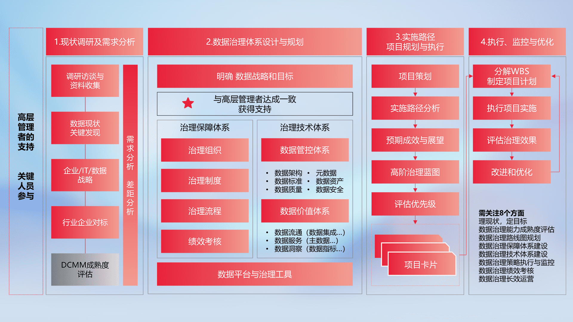 制定并执行统一的数据标准,,,,规范数据定义和格式,,,,消除冗余和不一致性,,,实现跨部门和跨系统的数据一致性,,为企业提供标准化的数据基础。。。